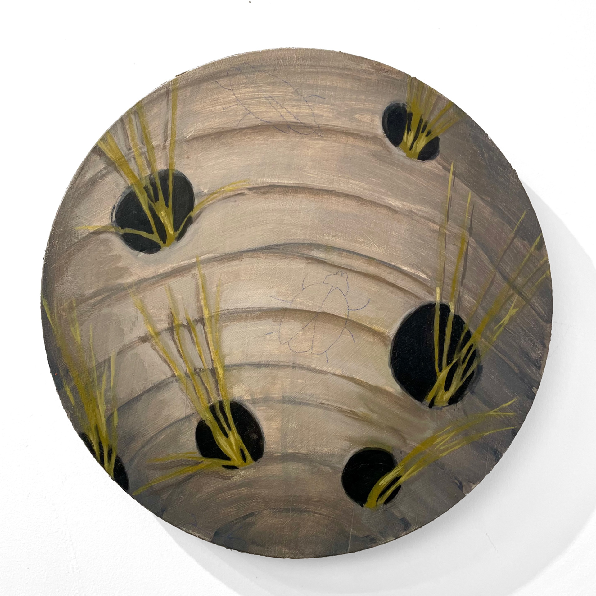 oil, and colored pencil on wood